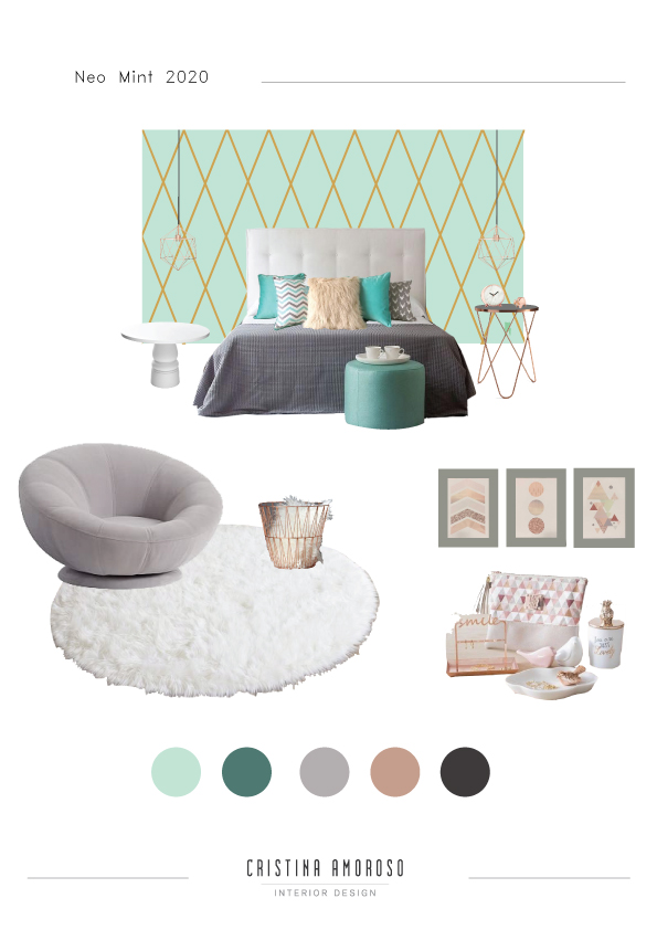 Me encanta esta nueva propuesta de color porque refleja mucha calma y es oxigenante, y se podrá usar de diferentes formas y en espacios que no lo creerían. El siguiente modoboard es uno de mis últimos trabajos aplicado este color en una habitación de adolescente combinado con Gold rose que quedó ¡increíble!. Pronto subiré el trabajo completo. Podrán verlo dentro del menú proyectos.