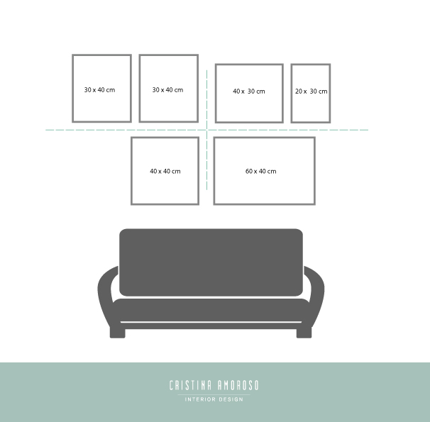 Existen medidas estándares de láminas o cuadros que se pueden utilizar, y si la idea es que en tú espacio se use en modo de collage, te dejo varias opciones que pueden ser de mucha ayuda a la hora de realizar la composición.