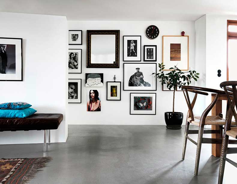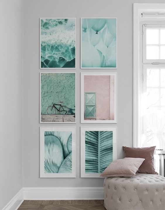 Lo ideal es usar colores que contrasten con tu espacio y en conjunto generen armonía. La idea es que esa pared llena de arte, se convierta en un punto focal. Evita colgar las obras más oscuras juntas, es mejor que las alternes con las claras.