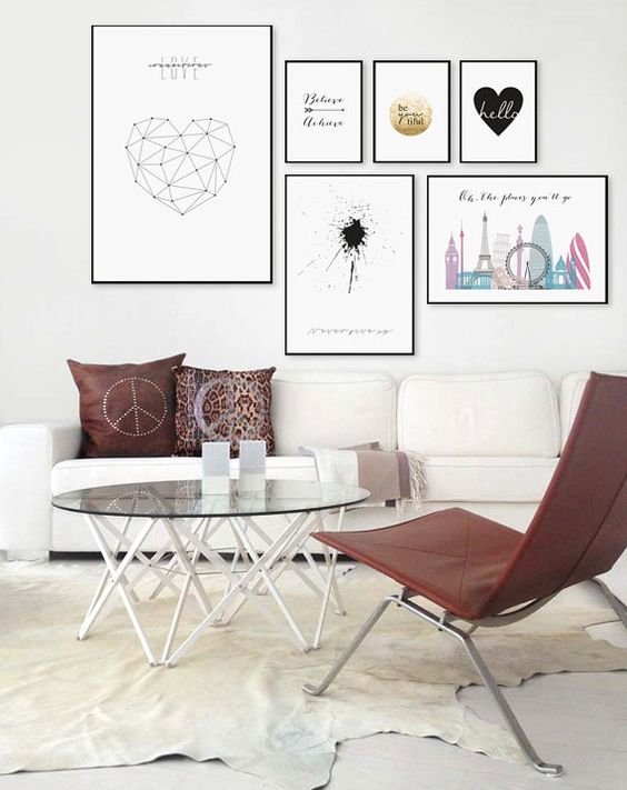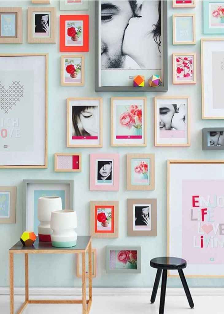 Una guía muy importante es el uso de la “línea invisible” que será el inicio para desplazar y crear ese gran mural con posters de diferentes medidas. Sin embargo, si eres una persona con gustos más sencillos y prefieres hacerlo de una manera más simplificada, puedes encontrar opciones que incorporen marcos con pocos elementos, que conseguirán resultados increíbles.