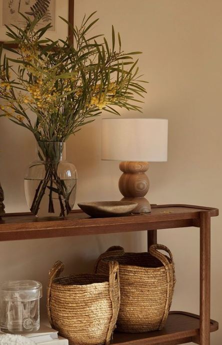 Opta por materiales naturales como la madera, la piedra y el mimbre. Estas texturas añaden calidez y un toque orgánico a cualquier espacio. Puedes incorporar estos materiales en muebles, revestimientos de paredes o incluso en pequeños detalles decorativos.