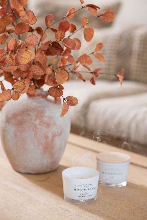 Los aromas pueden transformar por completo una experiencia. Utiliza velas perfumadas con fragancias de canela, vainilla, nuez moscada o incluso notas de madera para infundir tu hogar con los deliciosos olores del otoño. También puedes optar por difusores de aceites esenciales con mezclas aromáticas que evocan la temporada.
