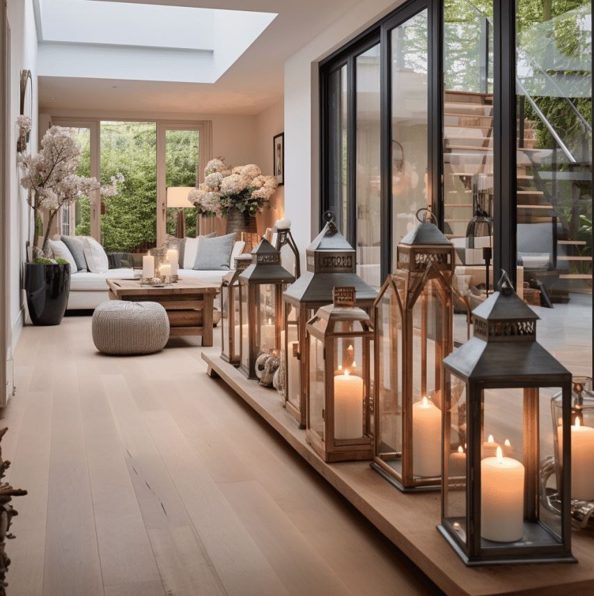 Las plantas de interior no solo purifican el aire, sino que también añaden vida y frescura a cualquier espacio. Opta por plantas de hojas grandes y verdes para un toque tropical o elige plantas de otoño como crisantemos o calabazas para una otoño puedes fusionarlo con elementos cálidos. Opta por muebles de líneas limpias y colores neutros, pero añade capas de textiles y elementos decorativos cálidos para crear un equilibrio armonioso.