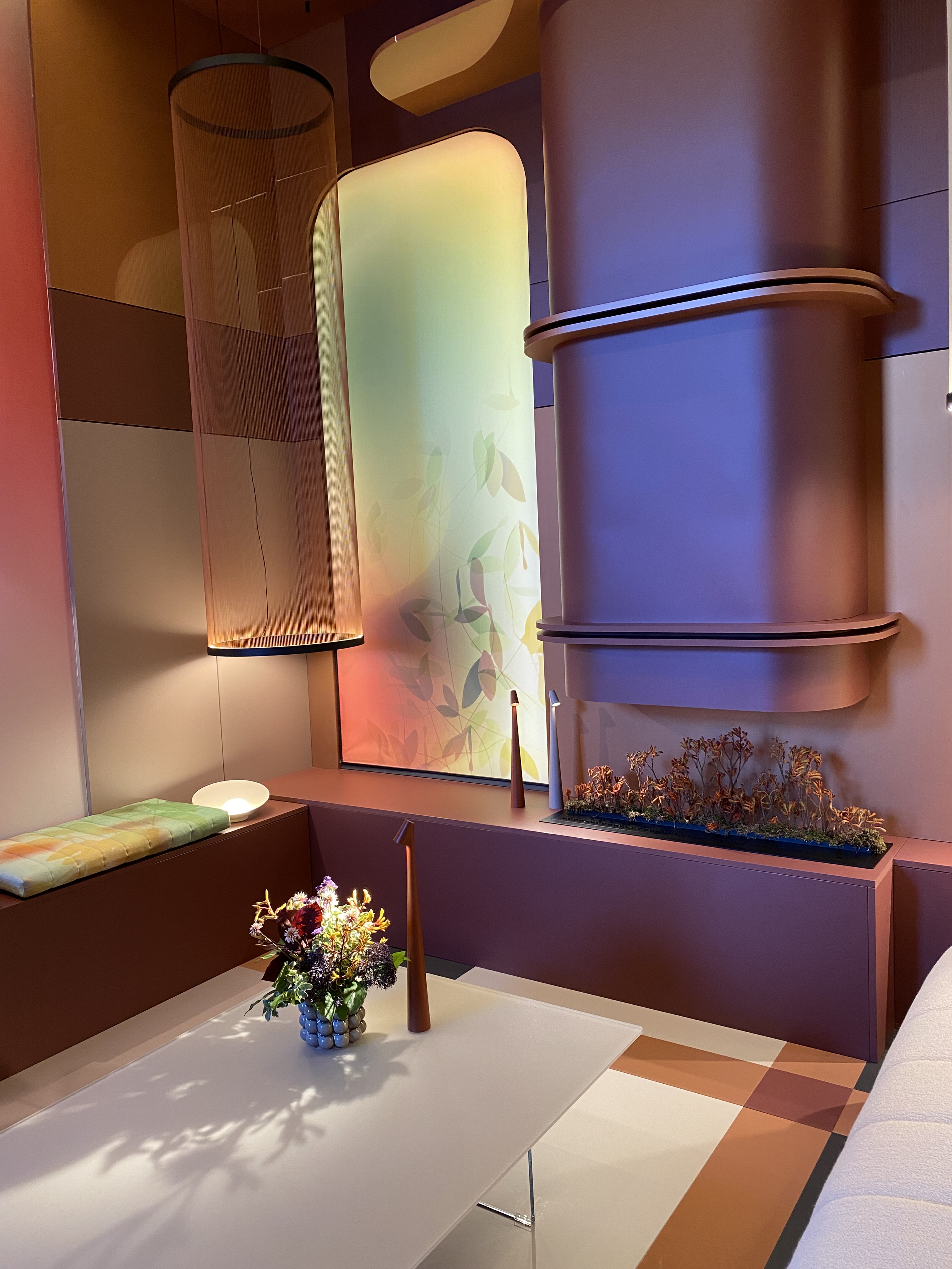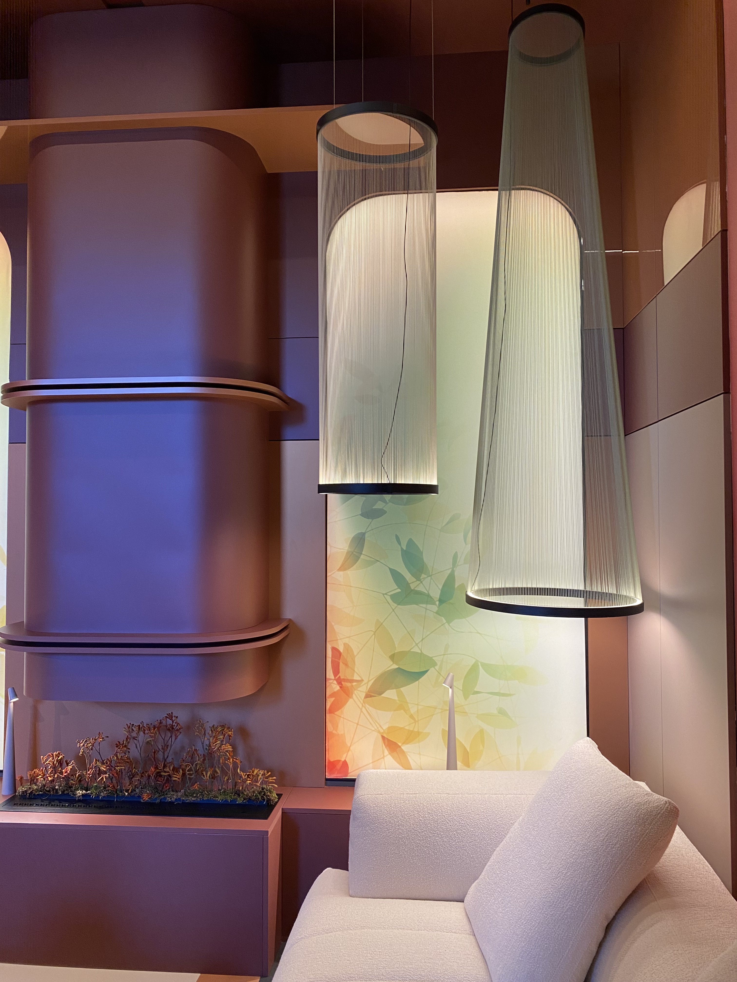 Terra Living por Welcome Design: Este espacio destaca por su iluminación tenue y tonos cálidos, con la sublime iluminación de Vitra como protagonista, un espacio que me ha cautivado por su precisa utilización del color y contrastes.