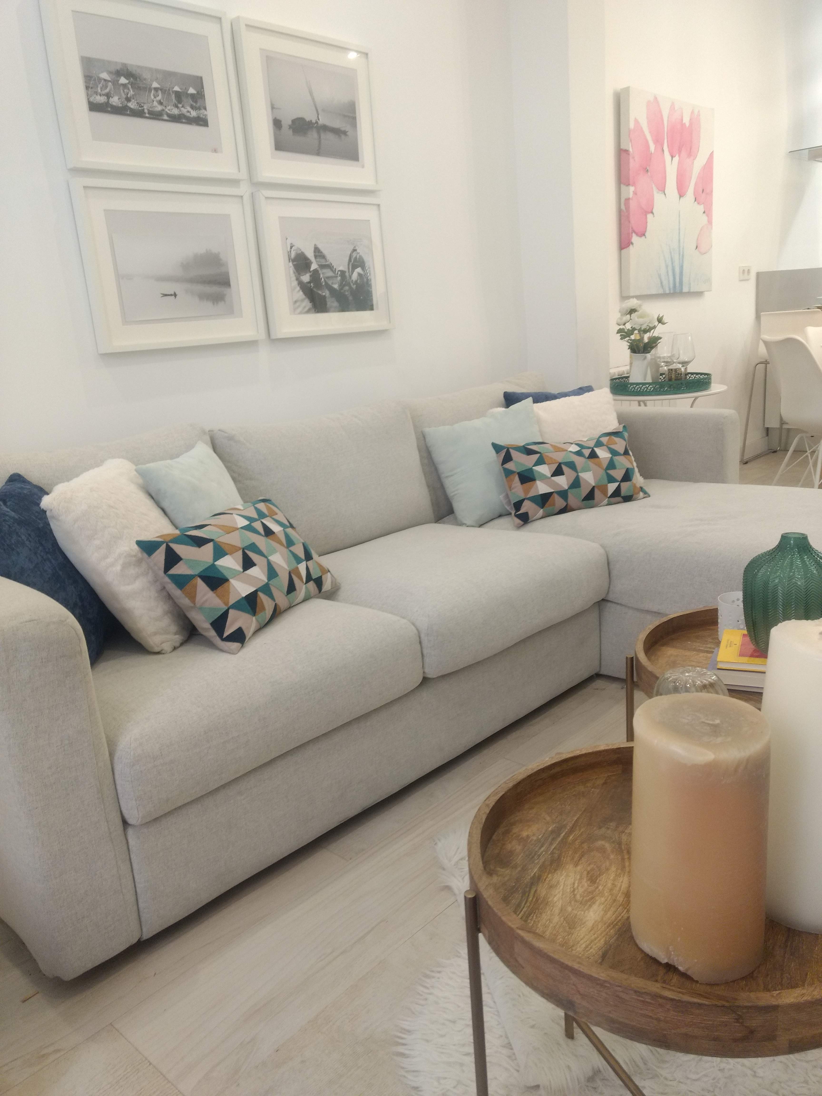 Elegimos el blanco en paredes para dar luminosidad, y el mobiliario en colores neutros y dando un toque de color en los detalles. Se podrá observar el blanco de fondo combinado con el azul, aqua, mostaza y verde que envuelve y se comunica entre los espacios.