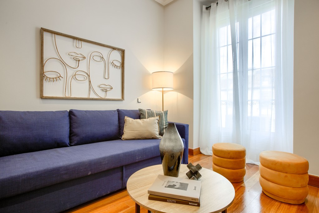 Este es un proyecto de interiorismo integral para un edificio de cinco pisos, con las mismas características en distribución: salón, comedor, cocina, baño y una habitación.