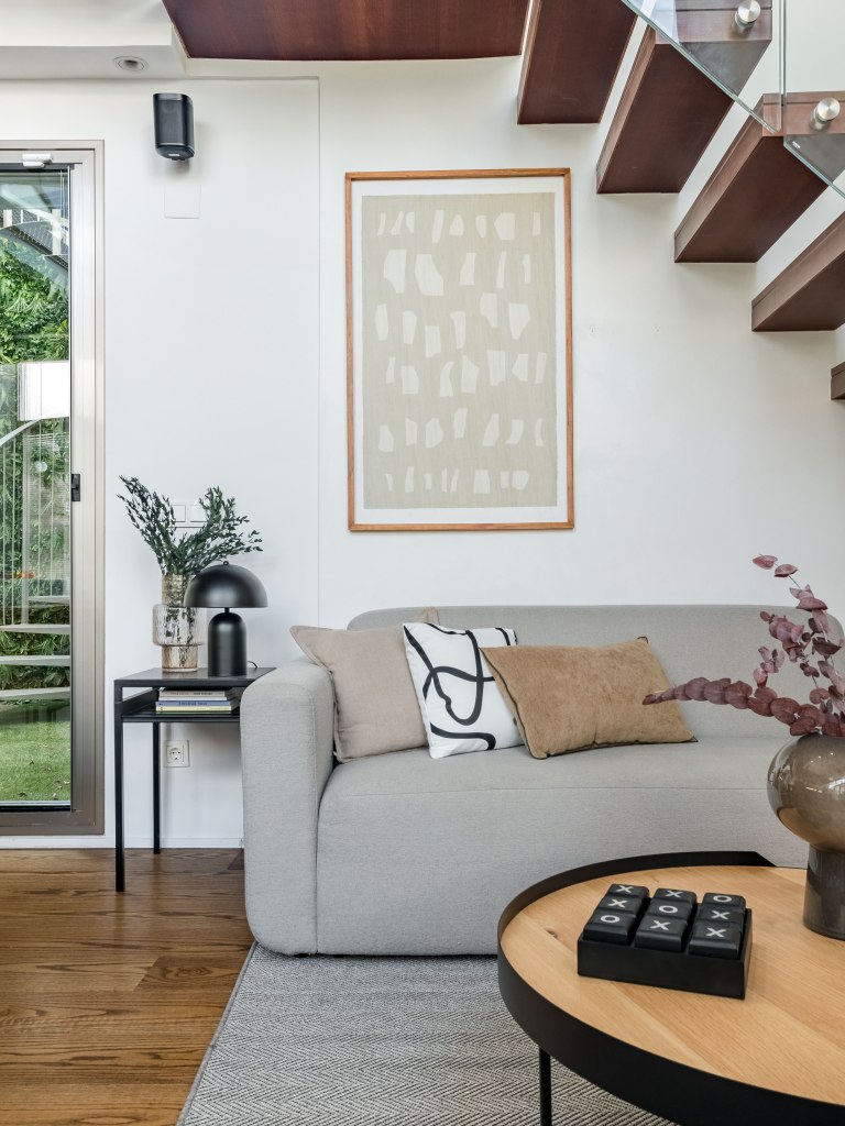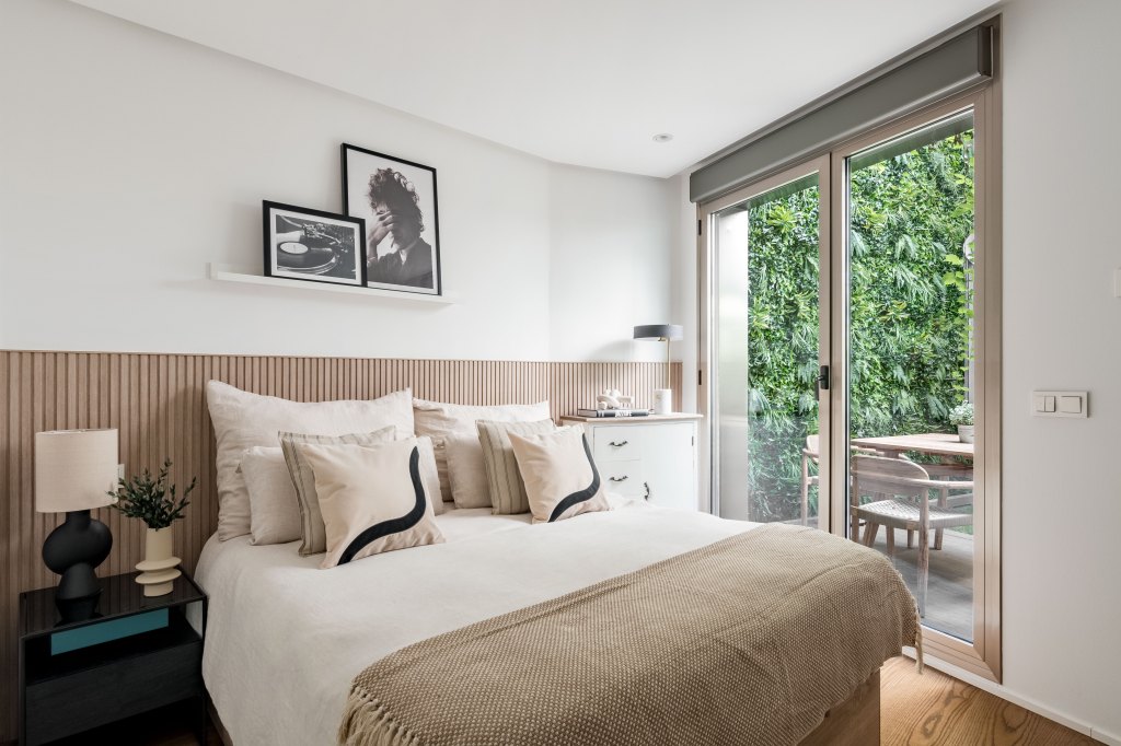 La iluminación, con lámparas colgantes y luces ambientales, crea una atmósfera envolvente. La paleta neutra, con toques de color, añade carácter sin perder la sensación de hogar.